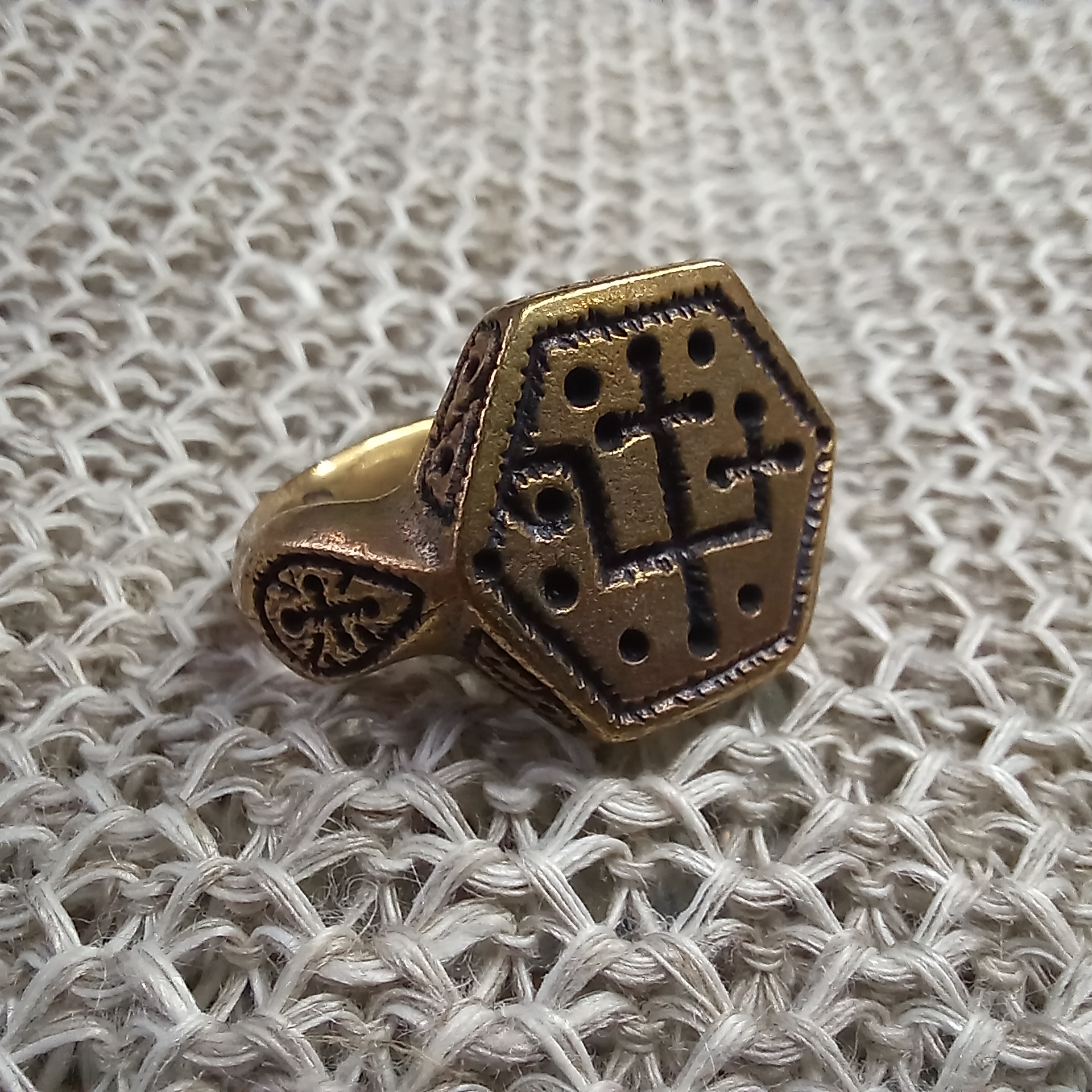 Русь 12-13 в. Кольцо с изображением княжеской тамги, приписываемой Рюриковичам (оригинал выполнен в золоте).