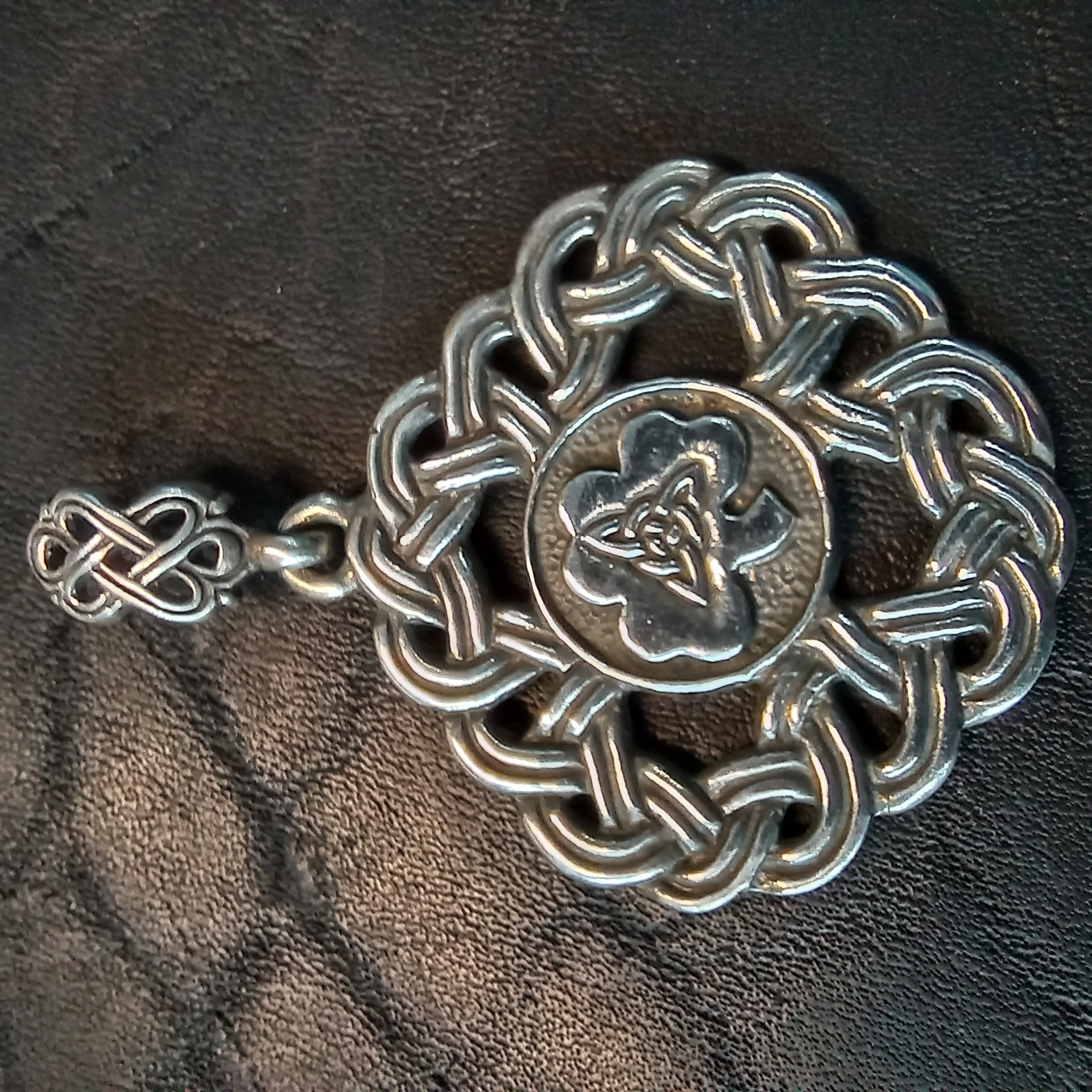 Трискель, изящно вплетённый в дизайн подвески, словно танцует  притягивая взгляды своей динамичной красотой. Легкая и удобная, она станет вашим лучшим другом в ежедневных приключениях!